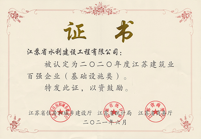 • 江蘇建筑業(yè)百強(qiáng)企業(yè)2022年度證書